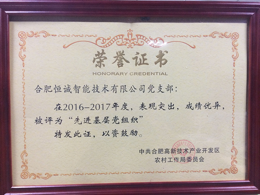 近日,高新區(qū)召開紀念建黨96周年大會,合肥恒誠智能技術(shù)有限公司黨支部榮獲“先進基層黨組織”稱號。