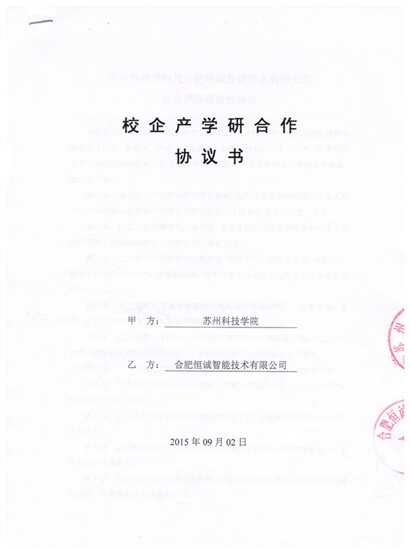 我公司于9月2日與蘇州科技學院就運用知名高校人才、智能低氧的應用、技術優(yōu)勢結合企業(yè)市場資源開展產學研合作進行探討,簽訂合作協議。