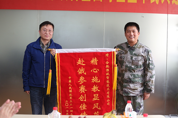 日前,中國人民解放軍陸軍某部隊副部隊長一行,專程來合肥恒誠智能公司,舉行頒旗儀式。