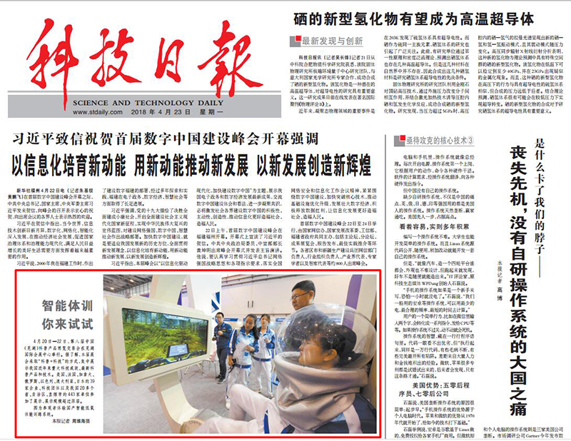 4月23日,《科技日?qǐng)?bào)》頭版報(bào)道了我司自主研發(fā)的產(chǎn)品“勇闖高原”和“魔幻高原”該產(chǎn)品首次亮相蕪湖科博展取得了一致好評(píng)。