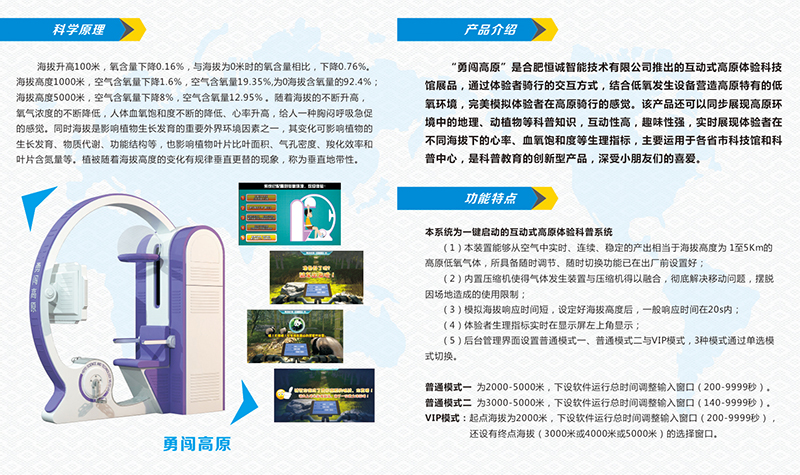 作為國(guó)內(nèi)智能低氧產(chǎn)學(xué)研一體化標(biāo)桿企業(yè),我司攜國(guó)內(nèi)首創(chuàng)互動(dòng)式高原體驗(yàn)科普系統(tǒng)系列產(chǎn)品“勇闖高原”和“魔幻高原”亮相展會(huì)。