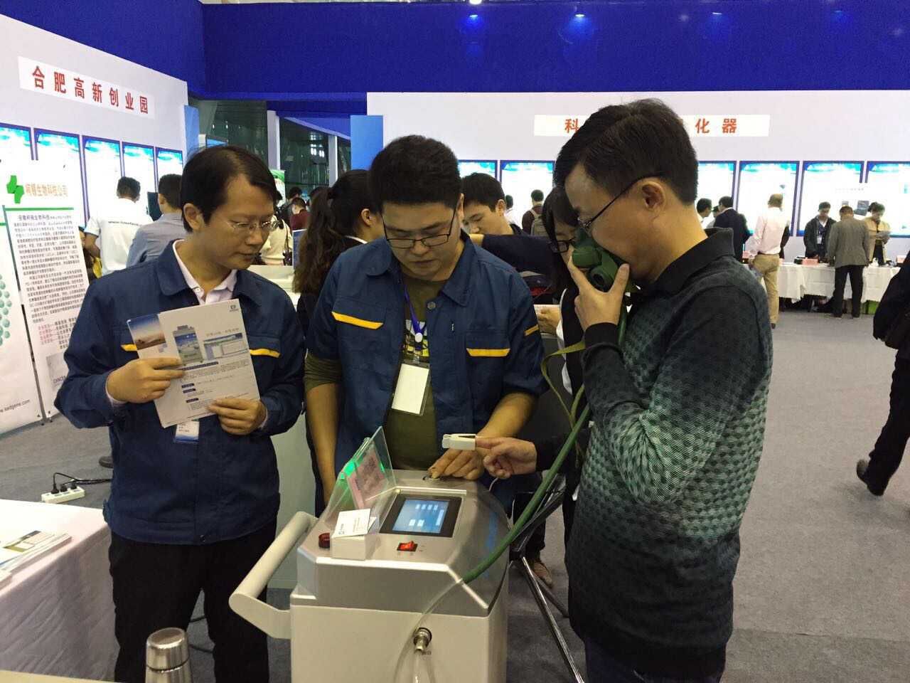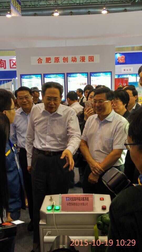 在合肥分會場的科技企業(yè)孵化器展區(qū)里,合肥恒誠智能技術(shù)有限公司通過圖文與實物,設(shè)備展示與現(xiàn)場工作人員操作展示相結(jié)合的方式,全面展現(xiàn)了智能化低氧呼吸訓(xùn)練裝置產(chǎn)品。上午十點(diǎn)三十分左右,省委副書記、省長李錦斌來到我公司展區(qū)前,與公司領(lǐng)導(dǎo)親切交流,并饒有興趣聽取了研發(fā)人員的介紹,仔細(xì)了解了智能低氧設(shè)備的研發(fā)背景、主要用途以及行業(yè)前景等情況。在現(xiàn)場,李錦斌得知《智能化低氧呼吸訓(xùn)練裝置》產(chǎn)品的技術(shù)創(chuàng)新性強(qiáng)、生產(chǎn)設(shè)備技術(shù)先進(jìn),填補(bǔ)了國內(nèi)空白,達(dá)到國內(nèi)領(lǐng)先水平,并且具有很好的經(jīng)濟(jì)效益和社會效益時,他頻頻點(diǎn)頭表示贊許。