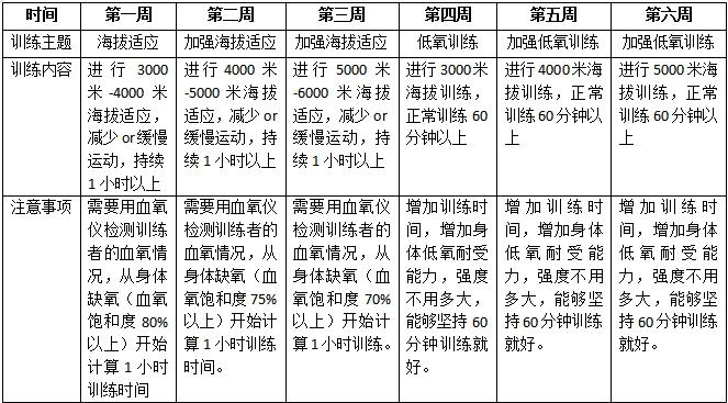 原理:在5000米訓(xùn)練方法的基礎(chǔ)上,增加海拔和訓(xùn)練強(qiáng)度,進(jìn)而增加人體在極低氧環(huán)境下的運(yùn)動能力。