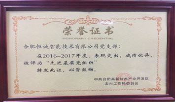 近日,高新區(qū)召開紀念建黨96周年大會,合肥恒誠智能技術(shù)有限公司黨支部榮獲“先進基層黨組織”稱號。